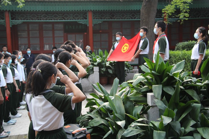 2021年9月30日,我国立法将这一天设立为国家烈士纪念日。近代以来,为了争取民族独立和人民自由幸福,为了国家繁荣富强,无数英雄献出生命,烈士的精神永垂不朽。我们的校园作为中国共产党在北京早期革命活动重要历史遗迹,这片土地,拥有众多文化巨匠的印记和英雄身影,传承着红色基因,革命的火种也在这方土地上生生不息。我校少先队大队被命名为“刘和珍、杨德群少先队大队”,就是为了纪念这些富有家国情怀,为了国家的独立与民族的解放,奉献青春与热血的英烈。还记得,初一年级时,同学们在刘和珍杨德珍纪念碑前,举行建队仪式,重温入队誓词,努力做优秀少先队员。如今,在同学们年满14周岁之际,在国家烈士纪念日,在文化园纪念碑前,我们举行庄严的离队建团仪式,以激励大家树立正确的理想、信念,立志努力学习,用实际行动肩负起强国重任。