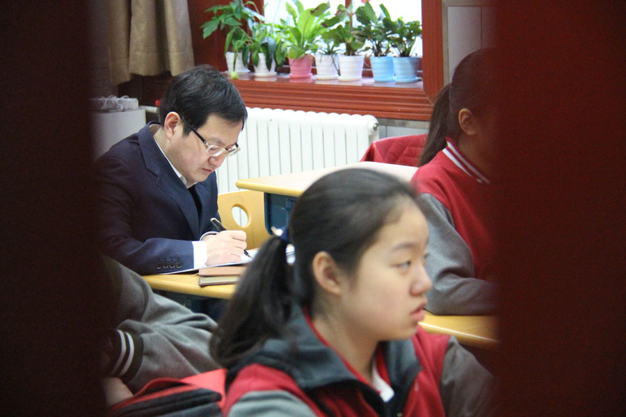 2017年3月6日清晨,西城教委丁大伟主任来到我校听课并调研学校教学、“1+3”培养项目和校园文化建设工作。