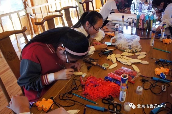 参观完北极泉矿泉水生产基地,同学们亲自动手,设计了一个专属于自己的一瓶矿泉瓶。除此之外,同学们还亲自动手做了一个烙铁画,抒发情感,表达祝福。