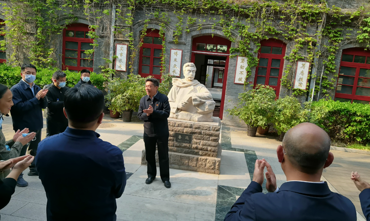 严虹校长及学校文化发展办,校团委的相关干部、老师一同参加了此次党史学习教育活动。就校园的红色历史以及它在近现代教育史上的重要价值和地位,向大家做了讲解介绍。“基教司”的同志们认真参观了这处保存完好的近现代教育设施,聆听了建党前后在这方院落里发生的故事。