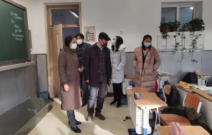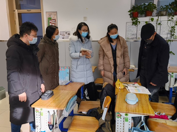 高付元主任一行首先利用课间操时间实地查看了教室环境、通风状况、桌椅高度、作业公示、作业批改、教辅使用等情况,并观摩了科技社团小成员们的赛前训练。