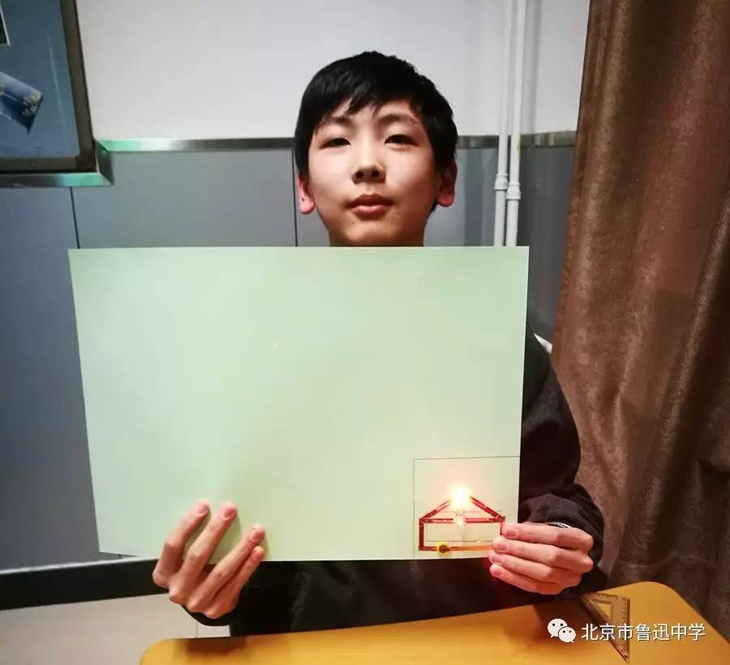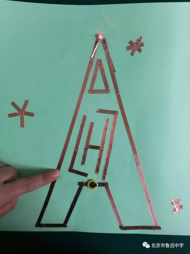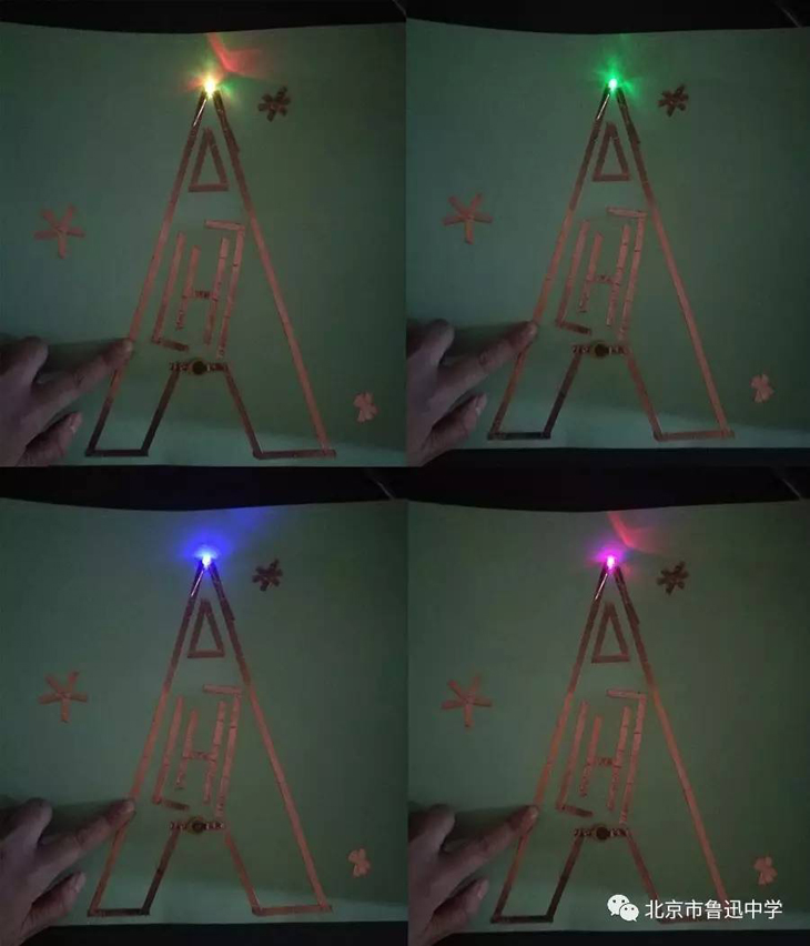 学生通过制作纸电路贺卡,将科学知识与艺术表达有机结合在了一起。既学习了电路知识,能够实际连接电路,又把电路知识运用到现实生活中去,玩得高兴,学得有劲。纸电路虽然原理简单,但是实际操作起来并不容易,因此,很锻炼学生的动手能力。
